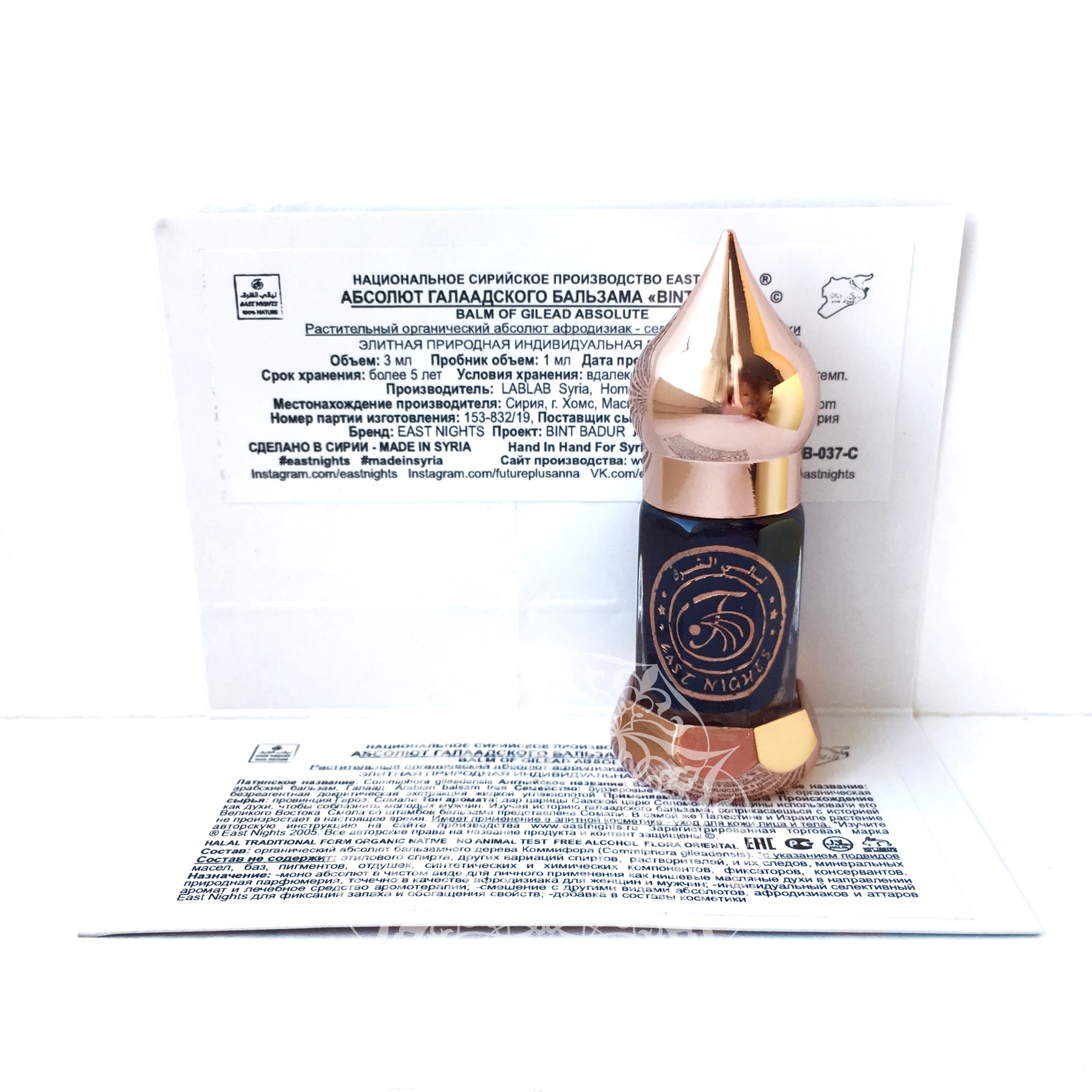Состав Состав: органический абсолют смолы бальзамной коммифоры (Commiphora gileadensis)
