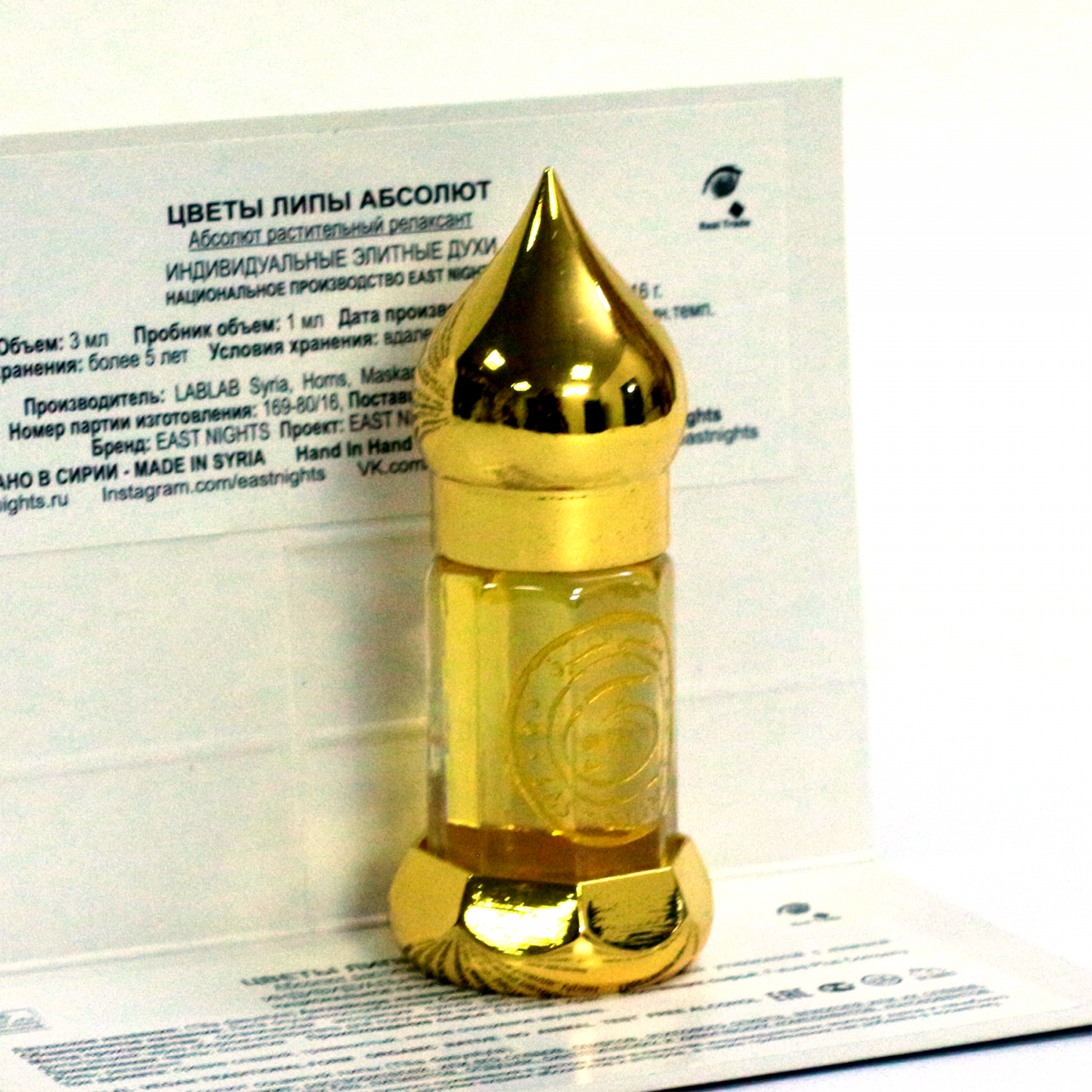 - смешение с другими видами абсолютов и аттаров East Nights