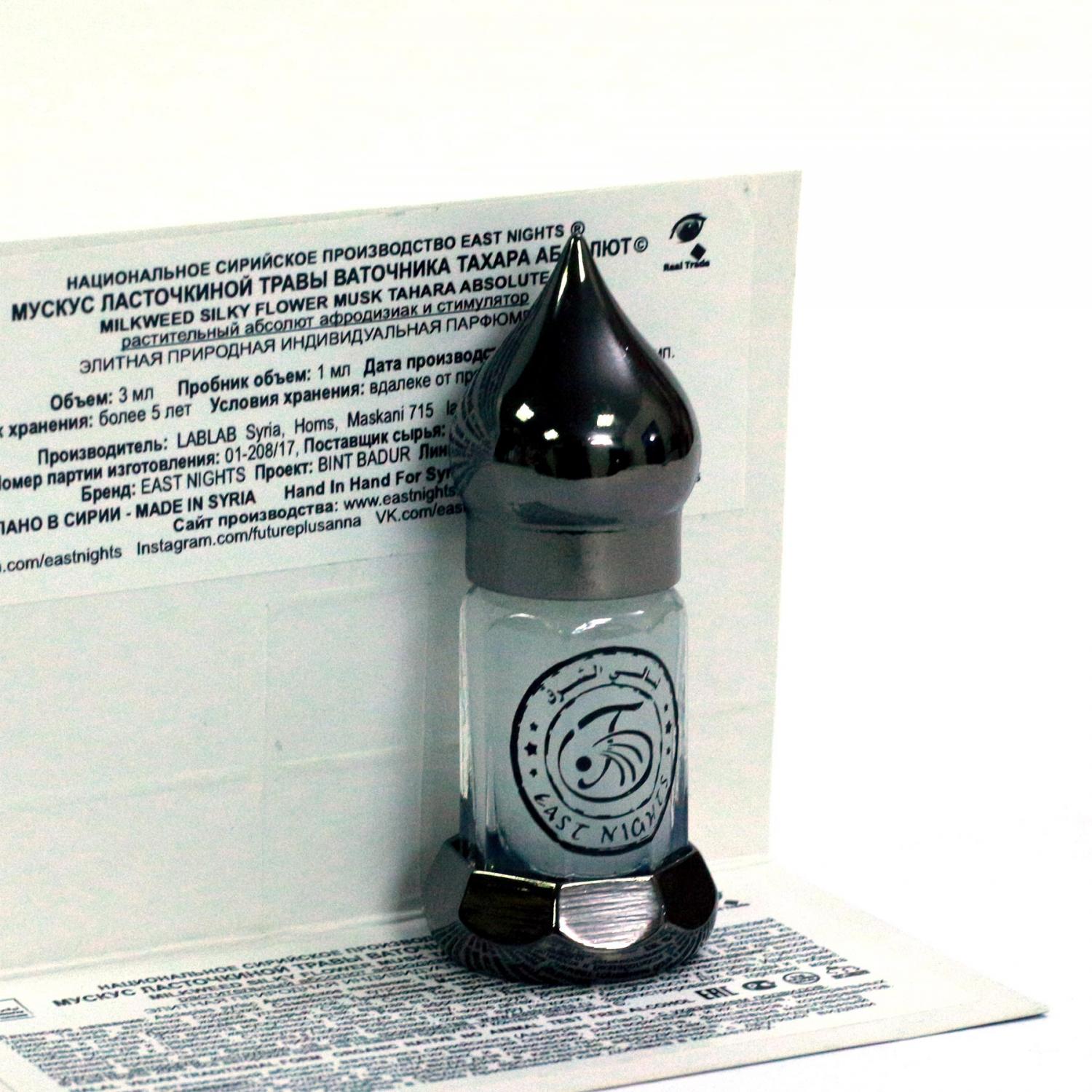 Мускус тахара — счастливый аромат, о том, что советует нам природа! Великолепная форма природного ингредиента — соцветий и млечного сока ласточкиной травы, в ботанической систематике имеющая название «ваточник сирийский», наполненная энергией любовных феромонов флоры Востока.