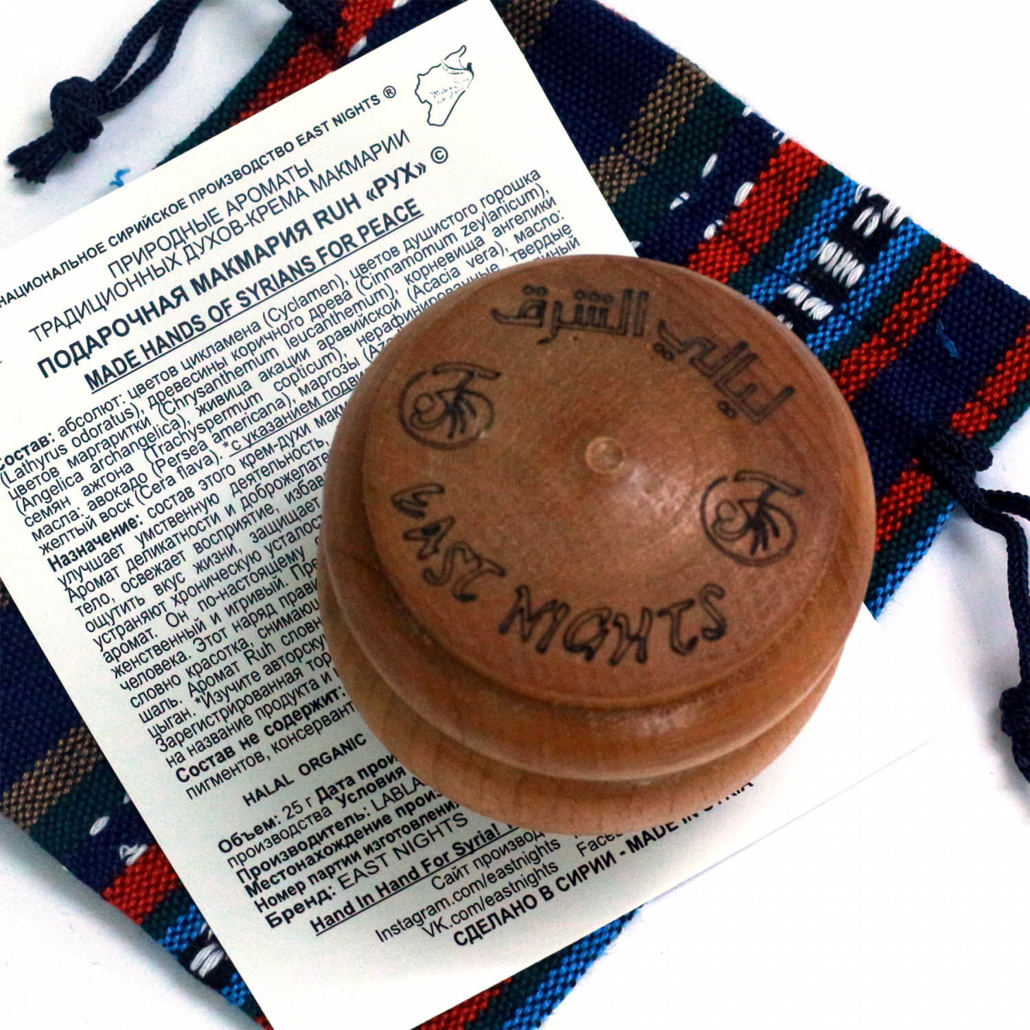 Состав абсолют: цикламен цветы, горошек душистый цветы, коричник древесина, маргаритка цветы, ангелика корни, акация аравийская живица; масло ажгон семена, нерафинированные твердые масла: авокадо, маргоза, воск пчелиный желтый