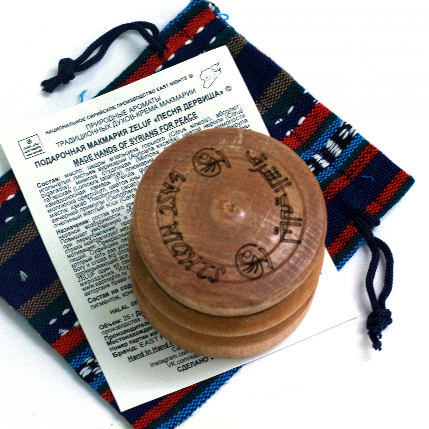 Состав масло: цедры апельсина горького, абсолют: игольчатых листьев аурикарии, цветов нероли, мимозы студливой, цветов жимолости татарской, плюмерии красной, ферулы камедоносной камедь, настой створок раковины моллюска operculum, цветов хны; нерафинированные твердые масла: какао, косточек манго, сеямн вечерней примулы, карите, пчелиный желтый воск