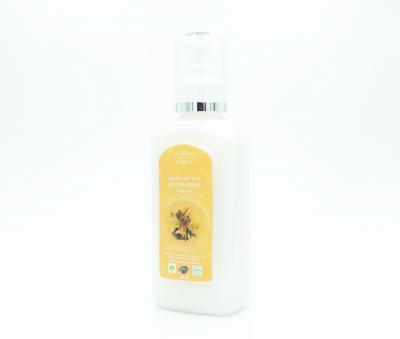 Состав эмульсия олива сирийского сорта Сорани (Olea europaea) плоды, молочная сыворотка, мякоть листьев алоэ вера (Aloe barbadensis), масла: плодов оливы сирийской сорта Сорани (Olea europaea), зародышей пшеницы мягкой сирийского сорта Сунпани (Triticum sunpanii), масло семян томата, гидролат семян огурца (Cucumis sativus), пудра смолы коммифоры мукул (Commiphora mukul)