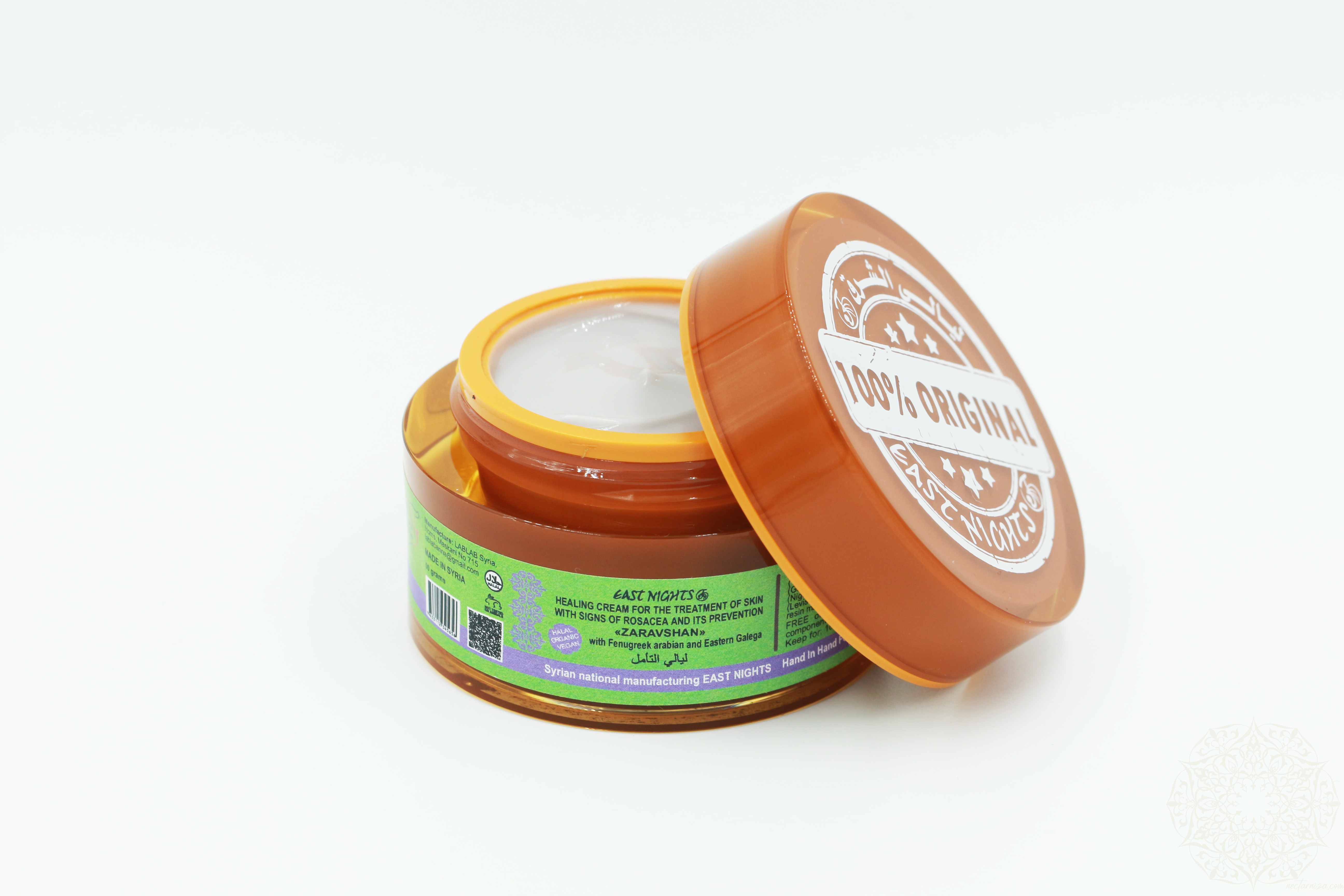 Healing cream for the treatment of skin with signs of rosacea and its prevention with Fenugreek arabian and Eastern Galega ©