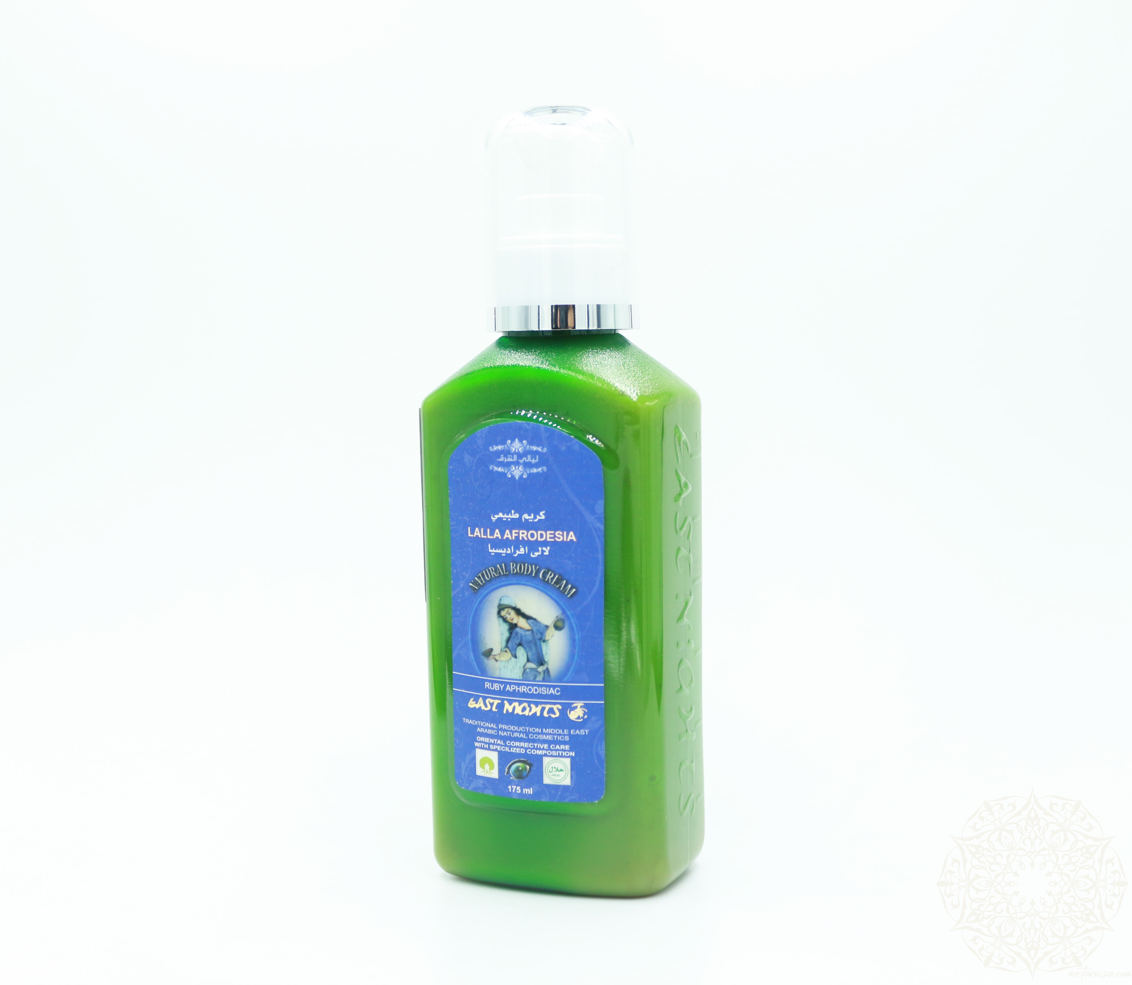 Состав эмульсия олива сорта Абу-Сатл (Olea Europaea) плоды, масло арганы, настой цветков тиаре, масло каритэ, сок листьев алое-вера, масло цветков нероли, масло лепестков мускатной розы, масло корневища женьшеня, масло бергамота, масло зародышей пшеницы, масло листьев пачули, масло лепестков фиалки персидской, гидролат цветков вечерней примулы, пудра природной смолы стиракс сомалийский