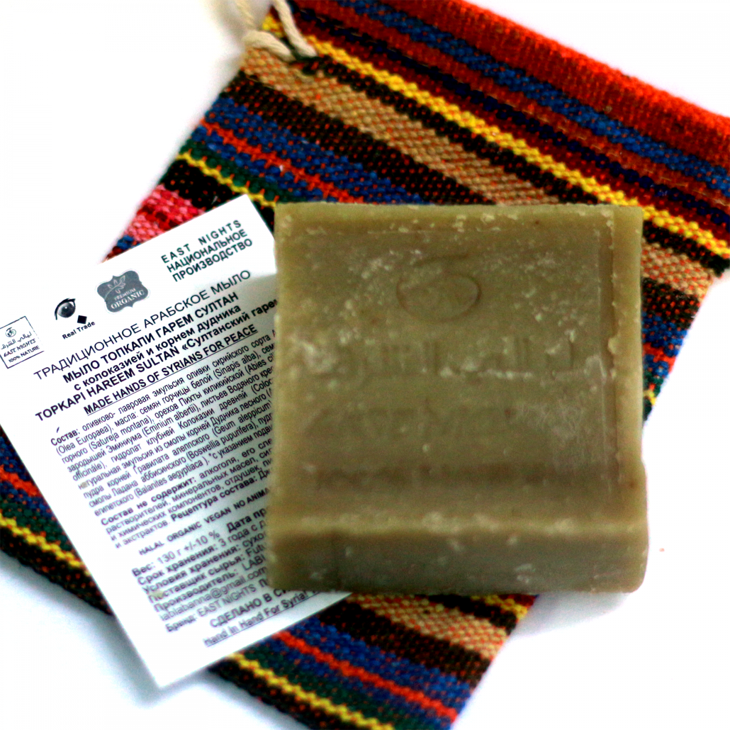 Техническая информация Вес: 130 г +/-10% Срок хранения: 3 года с даты производства. Условия хранения: сухое место, не оставлять в воде. Производитель: LABLAB Syria, Homs, Maskani 715 Проект East Nights Производство LABLAB Syria, Homs, Maskani no.715 Место нахождение производства Сирия, г. Хомс, Маскани 715