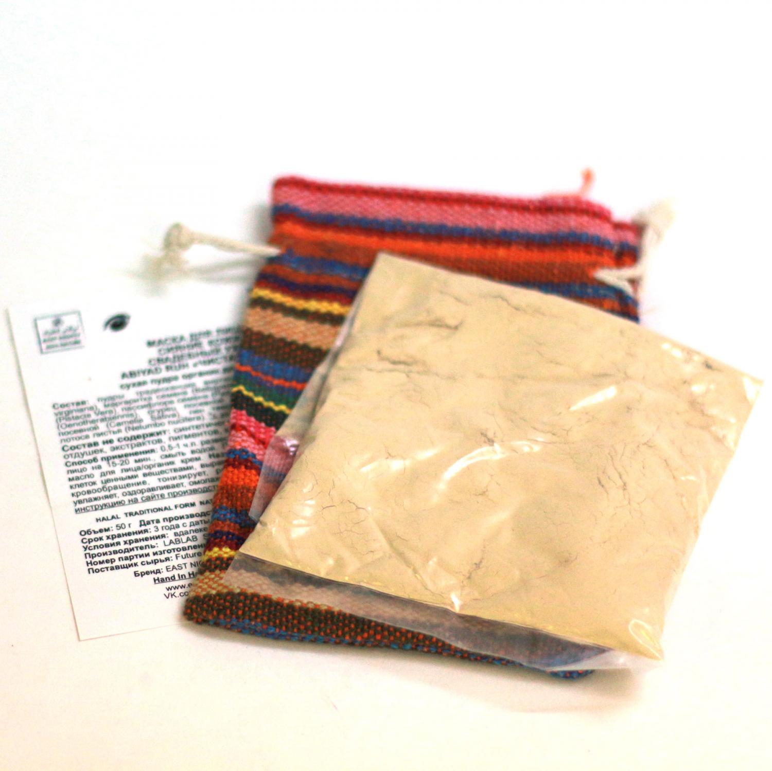 Состав пудра цветов традесканции виргинской, семян маргаритки, ядра фисташки зеленой, семян пассифлоры, семян вечерней примулы, семян огурца, семян рыжика, семян льна, листьев лотоса Проект East Nights Производство LABLAB Syria, Homs, Maskani 715 Место нахождение производства Сирия, город Хомс, Маскани 715