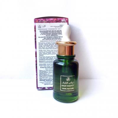 Великолепное сочетание восточных масел-спазмолитиков расслабляет лицевые мышцы, позволяя коже выровняться. Оказывает хороший дренажный эффект и подтягивает контуры.