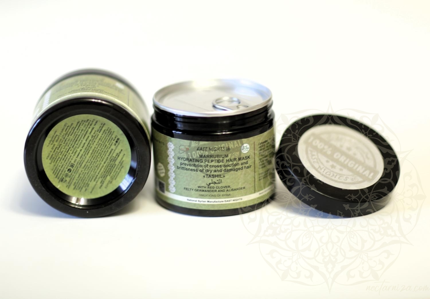 Состав оливковая эмульсия оливок сирийского сорта Карамани (Karamani Syrian grade olives), пудра: ливанский клубневый крахмальный горох корнеплод (Lathyrus libani), слизь растительная: джутовая мальва лт. (Corchorus olitorius), масла первого холодного отжима: смирния см. (Smyrnium olusatrum), гидролат: дубровник полевой лт. (Teucrium polium), масла СО2 докритического экстрагирования: красный клевер см. (Trifolium rubens), шандра иерапольская см. (Marrubium hierapolitanum)*, пигментация формулы- пудра: ревень волнистый корень (Rheum rhabarbarum), смоляная часть- эмульгация и консервация состава: саксаул белый сл. (Haloxylon aphyllum), скаммоний сл. (Convolvulus Scammonia)