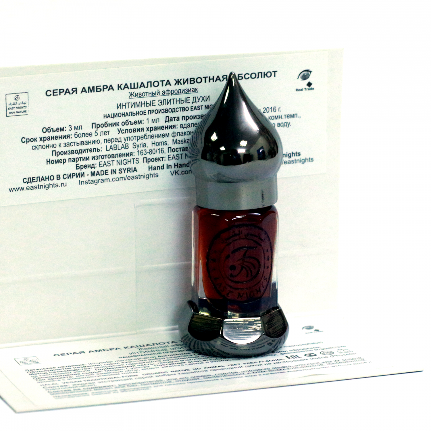 Амбра делится на разные виды, в зависимости от времени выдержки воскообразных кусков вещества в воде, ассортимент Национального сирийского производства восточной косметики East Nights располагает возможностью использования сырья серой, черной, белой, золотой амбры, а также промежуточных видов, удивляя почитателей природных ароматов, приверженцев натуральной парфюмерии и профессиональных парфюмеров.