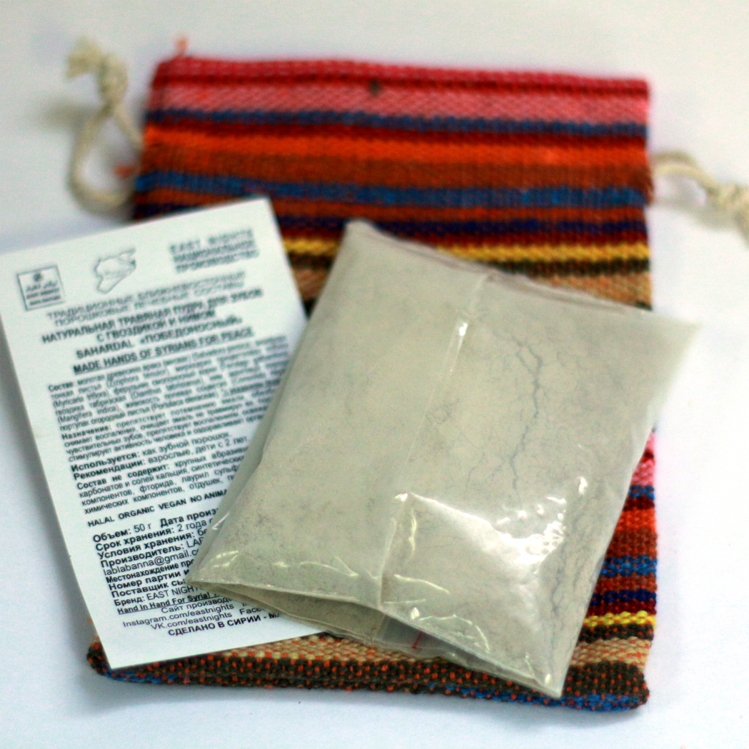 Состав: молотая древесина арака (мисвак), зизифора тогкая листья, мирикария трицветковая побеги, ферульник смолоносный корни, гвоздика табризская, ним, манговый порошок, живокость полевая соцветия, портулак огородный листья.