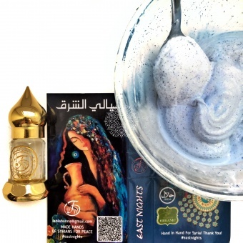 Чтобы сохранить оттенок вкуса цветков клитории следует подобрать мягкое по ароматике эфирное масло, поэтому в данном случае я выбираю именно кокосовый аромат, который берет за руку нежный привкус цветка и ведет в гармоничный парный танец.