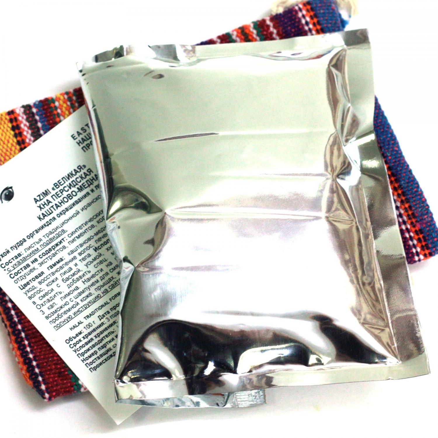Azimi- персидская каштаново-медная хна для волос и рисунка на теле «Azimi» (Великая) окрашивает волосы в насыщенный коричневый цвет с выраженным красновато-медным оттенком. Природный продукт природы Ирана, лечебные свойства которого известны в Персии и на Ближнем Востоке столетия, - для человека нет ничего более лечебного, чем природные материалы, а когда благодаря дарам природы возможно создание красивых оттенков волос и украшение тела- эти ценнейшие виды растительного вида переходят в еженевное использование. Хна - удивительное природное средство, которое преображает волосы, восстанавливая даже в самых сложных ситуациях повреждения структуры и останавливает потерю волос при длительном выпадении. Хна Azimi дает большие возможности для людей, стремящихся создать яркий красивый образ с помощью оттенка волос. Такая хна, соединяясь с изначальным тоном окрашиваемых волос, дает интересную палитру оттенков с преобладанием каштаново-медных цветов.