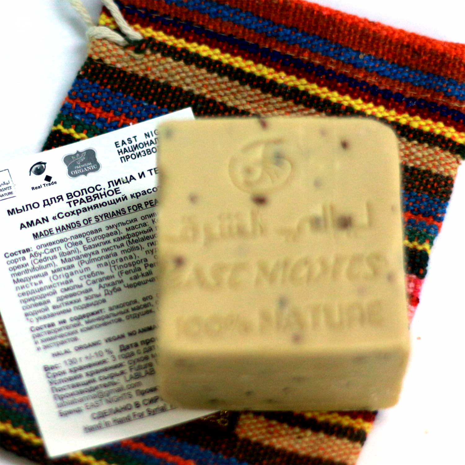 Состав эмульсия плодов оливы сирийского сорта Абу-Сатл (Olea Europaea) и лавра (Laurus Nobilis), масла: кедр ливанский орехи (Cedrus libani), базилик камфарный листья (Ocimum menthifolium), каяпутовое дерево листья (Melaleuca leucadendron), медуница мягкая (Pulmonaria mollis), гидролат майорана листья (Origanum majorana), пудра тиноспора сердцелистная стебль (Tinospora cordifolia), поташ дуба черешчатого (Quercus robur) Техническая информация Срок хранения: 6 лет с даты производства Проект East Nights Производство LABLAB Syria, Homs, Maskani no.715 Место нахождение производства Сирия, г. Хомс, Маскани 715
